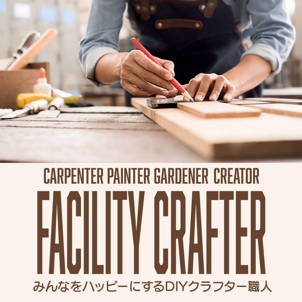 【DIYクラフター職人】は、日曜大工的なワーク、ペンキ塗りのほか、ウッドデッキの修繕、施設のメンテナンスなどが日常的なワークになります。雑草の茂った土地を開墾したり、看板をデザインして設置したりもします。弊社で行っているアウトドア事業には、古民家の民泊、グランピング、新らしい施設の整備などがあります。【DIYクラフター職人】は、おしゃれで素敵な施設の運営のために欠かせない重要なポジションです。副業でも構いません。毎月スケジュールを提出していただき、作業を担当してもらう登録制によって運営しています。細かいことは応相談となりますので、お気軽にお問い合わせください。